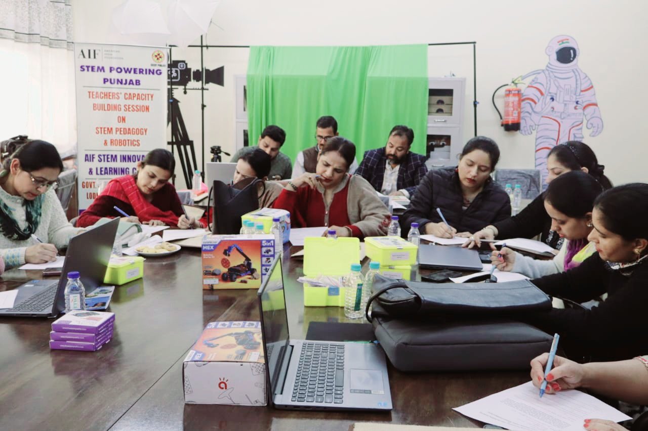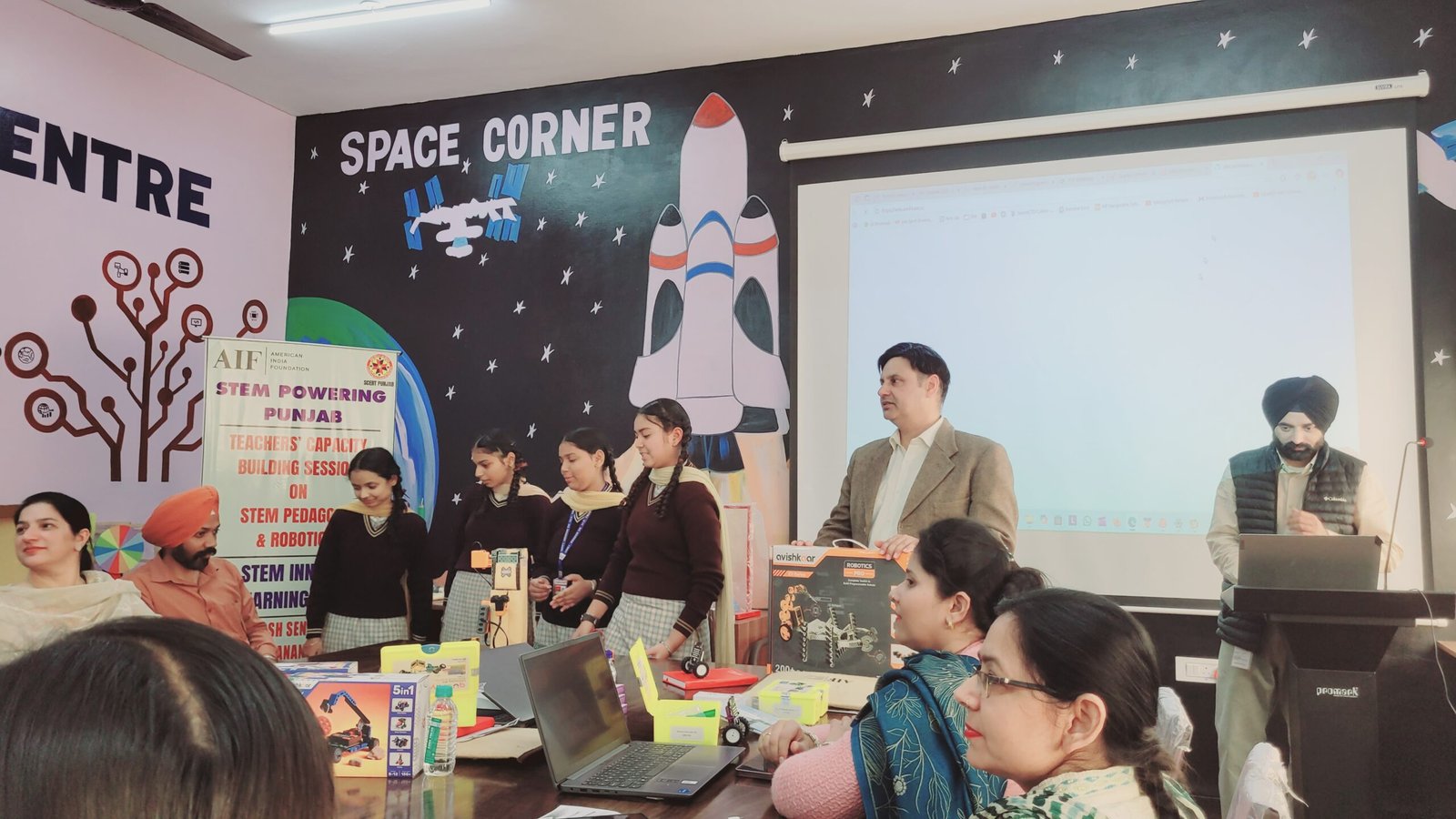ਸ੍ਰੀ ਅਨੰਦਪੁਰ ਸਾਹਿਬ, 18 ਨਵੰਬਰ: ਅਮਰੀਕਨ ਇੰਡੀਆ ਫਾਊਂਡੇਸ਼ਨ (AIF) ਵੱਲੋਂ ਸਰਕਾਰੀ ਆਦਰਸ਼ ਸਕੂਲ ਲੋਧੀਪੁਰ ਵਿਖੇ ਦੋ ਦਿਨਾਂ ਦੇ Teachers’ Capacity Building Workshop on STEM Pedagogy & Robotics ਦੇ ਦੂਜੇ ਦਿਨ ਦੀ ਟ੍ਰੇਨਿੰਗ ਅੱਜ ਸਫਲਤਾਪੂਰਵਕ ਆਯੋਜਿਤ ਕੀਤੀ ਗਈ। ਵਰਕਸ਼ਾਪ ਦਾ ਉਦੇਸ਼ ਅਧਿਆਪਕਾਂ ਨੂੰ ਸਟੀਮ ਅਧਾਰਿਤ ਸਿੱਖਣ-ਸਿਖਾਉਣ ਵਿਧੀਆਂ ਅਤੇ ਰੋਬੋਟਿਕਸ ਕਿਟਾਂ ਦੇ ਪ੍ਰਭਾਵਸ਼ਾਲੀ ਢੰਗ ਨਾਲ ਪ੍ਰਯੋਗ ਬਾਰੇ ਪ੍ਰਯੋਗਿਕ ਗਿਆਨ ਪ੍ਰਦਾਨ ਕਰਨਾ ਸੀ।