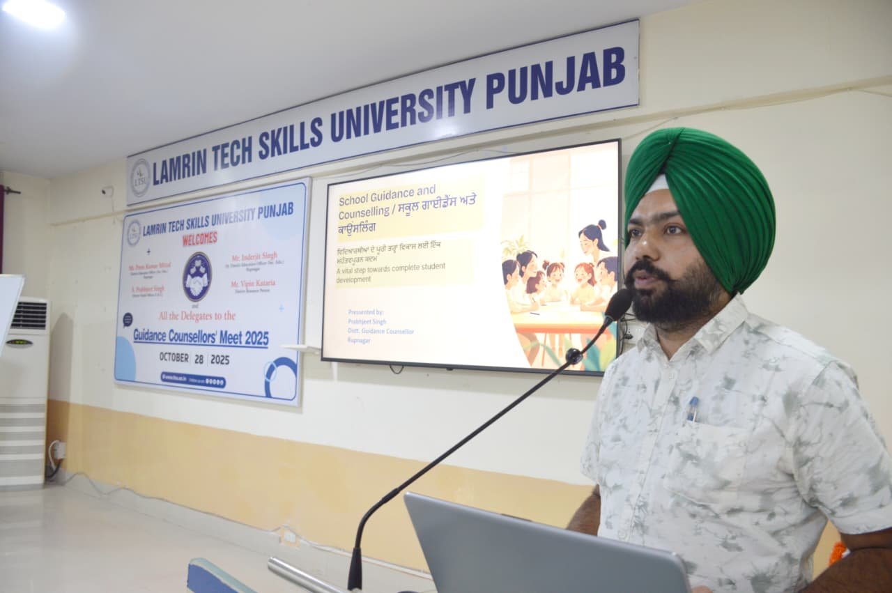 Rupnagar, October 28, — A one-day Career Guidance and Counselling Meet 2025 was successfully organized at Lamrin Tech Skills University, Rupnagar. The event aimed to enhance the knowledge and skills of school guidance counsellors in providing effective career counselling to students.