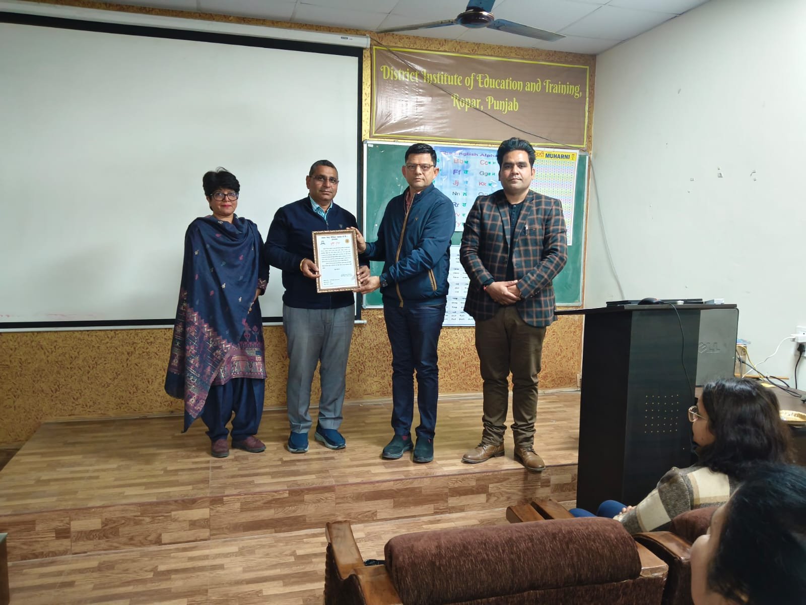 Additionally, for their significant contribution towards the effective implementation of Mission Samarth 4.0, Shri Vipin Kataria (District Resource Coordinator) and KRP Smt. Chhavi (English Mistress, Government Middle School Blan Kalan) were honoured by DIET Principal Smt. Monika Bhutani and District Education Officer Shri Prem Kumar Mittal.
