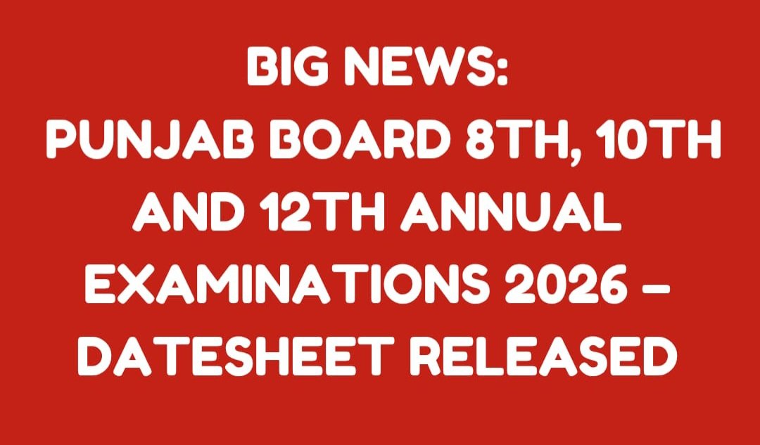 ਪੰਜਾਬ ਸਕੂਲ ਸਿੱਖਿਆ ਬੋਰਡ ਵੱਲੋਂ ਵਿਦਿਆਰਥੀਆਂ ਲਈ ਵੱਡੀ ਰਾਹਤ ਅਤੇ ਮਹੱਤਵਪੂਰਨ ਐਲਾਨ ਕੀਤਾ ਗਿਆ ਹੈ। ਬੋਰਡ ਨੇ ਅੱਠਵੀਂ, ਦਸਵੀਂ ਅਤੇ ਬਾਰਵੀਂ ਸ਼੍ਰੇਣੀ ਦੀਆਂ ਸਲਾਨਾ ਪ੍ਰੀਖਿਆਵਾਂ 2026 ਲਈ ਸਵੇਰ ਦੇ ਸੈਸ਼ਨ ਵਿੱਚ ਪ੍ਰੀਖਿਆ ਕਰਵਾਉਣ ਦਾ ਫੈਸਲਾ ਕੀਤਾ ਹੈ ਅਤੇ ਲਿਖਤੀ ਡੇਟਸ਼ੀਟ ਦੀ ਸ਼ੁਰੂਆਤੀ ਮਿਤੀ ਵੀ ਜਾਰੀ ਕਰ ਦਿੱਤੀ ਹੈ।