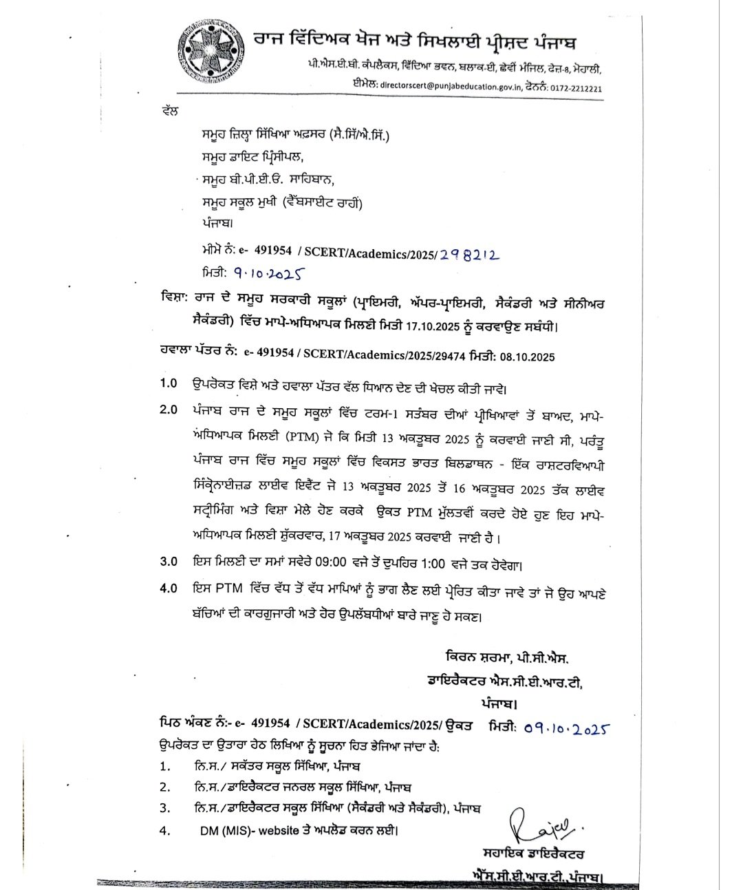 PTM DATE REVISED : ਮਾਪੇ ਅਧਿਆਪਕ ਮਿਲਣੀ ਦੀ ਰਿਵਾਇਜਡ ਡੇਟ ਜਾਰੀ
